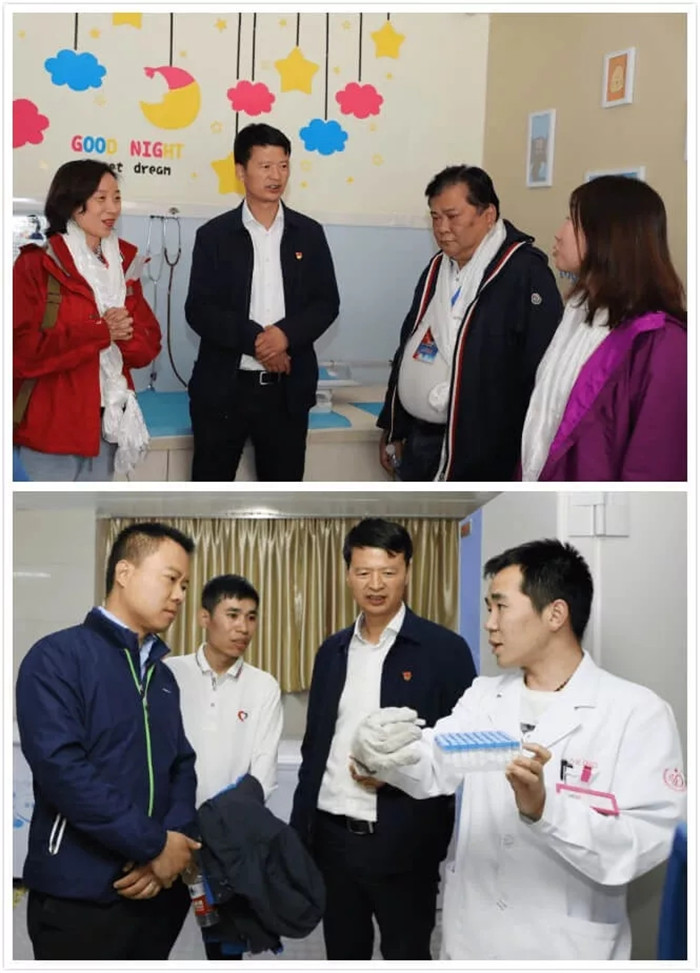 義診期間,中共中央統(tǒng)戰(zhàn)部七局處長(zhǎng)郭鵬與"同心共鑄中國(guó)心”駐西藏秘書(shū)長(zhǎng)趙士磊來(lái)到了阜康婦產(chǎn)兒童醫(yī)院詳細(xì)查看了正在井然有序進(jìn)行的義診現(xiàn)場(chǎng),在王斌董事長(zhǎng)陪同下參觀阜康婦產(chǎn)兒童醫(yī)院院區(qū),聽(tīng)取并查看了我院人類輔助生殖醫(yī)學(xué)中心等特色科室的開(kāi)展情況。