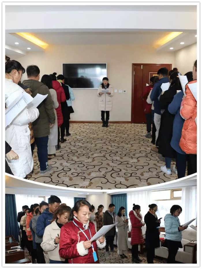 行政后勤全體工作人員共同誦讀新版的阜康企業文化