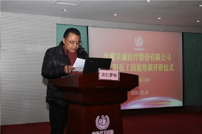 西藏玉拓醫療健康養老產業有限責任公司總經理次仁羅布為本次培訓活動致辭:"西藏阜康康復醫院是一家康復專科醫院,也是‘玉拓醫療’和‘阜康醫療’聯合創辦的醫院,我相信我們兩家公司一定會精誠合作,將康復醫院發展成為技術一流、服務一流的現代化醫院!”