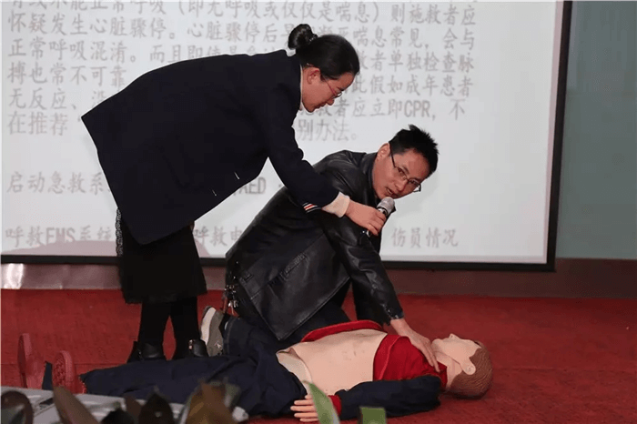 其中"消防知識”和"心肺復蘇:BLS”等課程的授課講師不但進行了理論知識的講解,而且帶領各位學員進行了實踐演練。