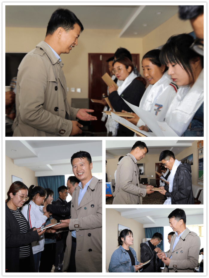 隨后,王斌董事長向7名規培生門頒發了《阜康員工守則》,并敬獻了潔白的哈達,佩戴了阜康院徽,他臨別叮囑:"謹記阜康囑托,謹守阜康準則,不辱阜康之名,為阜康爭榮!希望你們能夠腳踏實地在華西醫院和成都市第三人民醫院帶教老師的指導下完成規培計劃,并在三年內考過執業醫師資格證和規范化培訓資格證,按時歸來服務阜康、報效西藏!”