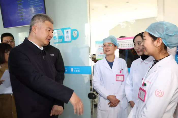 在婦產兒童分院口腔科,莊嚴書記見到了今年剛從內地畢業回藏工作的大學生強巴卓嘎。強巴卓嘎告訴莊嚴書記,自己在內地讀了5年口腔專業,在阜康工作很開心,收入也不錯,現在有越來越多的同學愿意到民營企業工作。莊嚴書記勉勵強巴卓嘎認真學習臨床技術,要不斷學習深造,提高自己專業技能,無論在公立醫院還是民營醫院工作,都是在為百姓的健康服務。