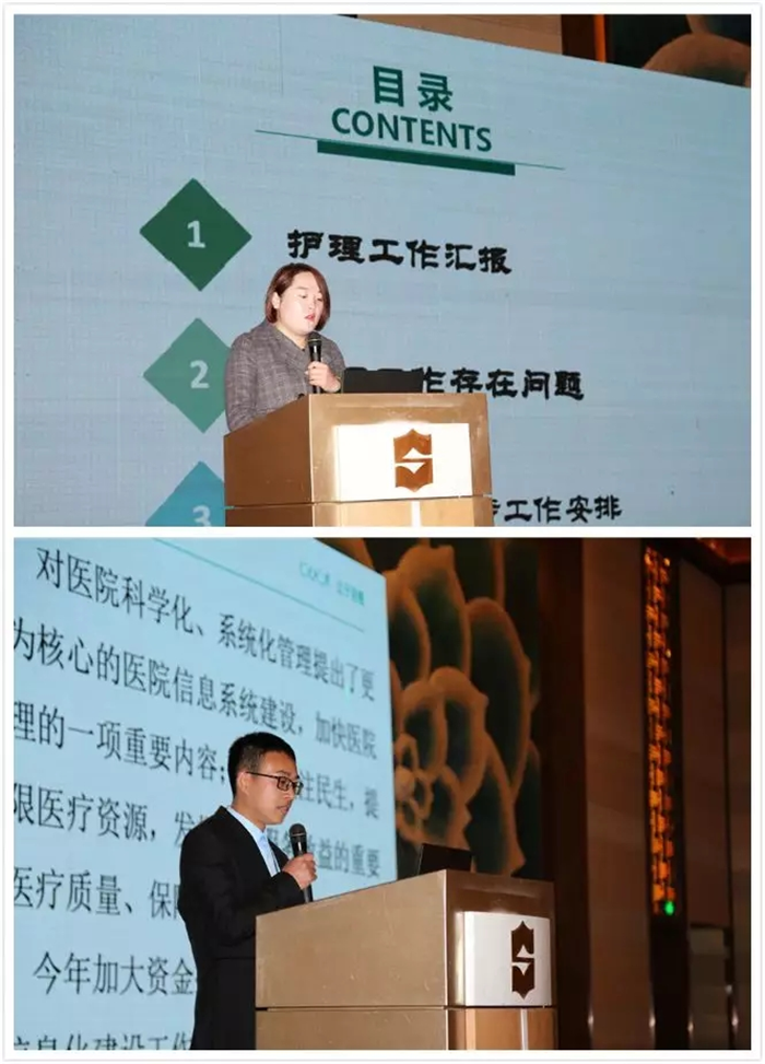 護(hù)理部主任王青青從"護(hù)理人員結(jié)構(gòu)情況”、"進(jìn)修情況”、"工作量”、"科室管理”、"信息化建設(shè)”等十一個(gè)方面進(jìn)行了護(hù)理工作匯報(bào),表示在第四季度的工作中將繼續(xù)落實(shí)責(zé)任制護(hù)理工作,嚴(yán)格執(zhí)行"三查十一對(duì)”制度,不斷優(yōu)化護(hù)理流程、提升整理護(hù)理質(zhì)量;信息科主任王海濱匯報(bào)顯示:全院信息化工作持續(xù)推進(jìn),現(xiàn)已建成運(yùn)行的有醫(yī)院信息化中心機(jī)房、云體檢管理系統(tǒng)、云EMR電子病歷管理系統(tǒng)、輸血管理系統(tǒng)、手術(shù)室管理系統(tǒng)、血液透析管理系統(tǒng)等。信息科將針對(duì)新系統(tǒng)上線中的各種問(wèn)題加快解決處理速度,不影響科室的正常運(yùn)作。