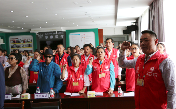 會上,西藏志愿者聯合服務會副秘書長在致辭中對"阜康雪域天使志愿者服務隊”的工作作出了肯定,表示參與志愿服務工作,既是"助人”、亦是"自助”,既是"樂人”,又是"樂己”,"贈人玫瑰、手留余香”。她希望阜康雪域天使志愿者服務隊展現醫療工作者的濟世情懷,通過貼心的服務化解醫患矛盾,通過親切的溝通促進醫患關系,為保障群眾生命健康貢獻力量。