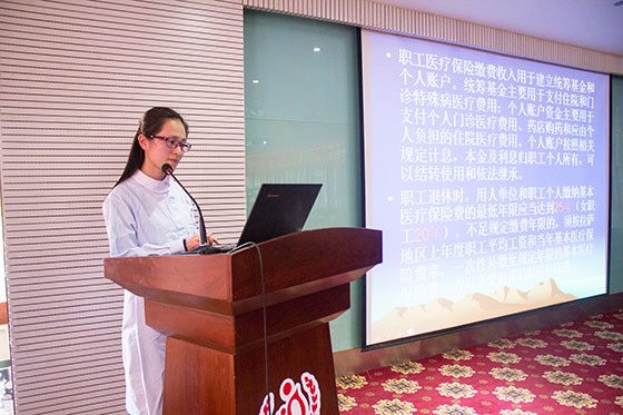 在隨后的醫保知識培訓中,醫保辦張燕平同志為新入職的臨床工作人員仔細講解了包括基本醫療保險、門診特殊病、大額醫療費商業補充保險、拉薩市醫療救助"一站式”即時結算服務、新農合等有關醫保方面的專業知識,以方便臨床醫務工作者在以后的各項實際工作中能與醫保進行很好的銜接,從而提高醫院醫保基金安全使用率,遏制醫療費用的不合理增長,維護參保人員的合法權益,促進各項醫療保險制度更加穩妥、有序地發展。