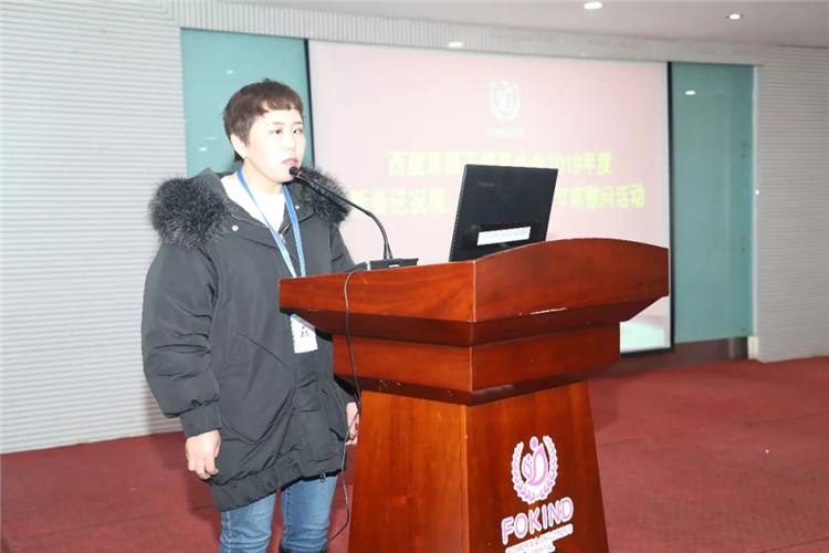 西藏阜康天使基金會秘書長吉拉帶來了阜康天使基金會創始人王斌、劉瀟瀟對困難員工的祝福和慰問,勉勵大家努力工作,與阜康共同進步,在走向幸福的路上一個都不能少,并祝大家過一個幸福快樂年!由于此次受助人員都是藏族員工,吉拉秘書長用藏語鼓勵大家積極生活、努力工作,要用一顆感恩的心回報社會。阜康天使基金會將在區黨委、政府的領導下,緊跟時代步伐,發展創新,爭取在助醫、助學、助困上幫助到更多的人。
