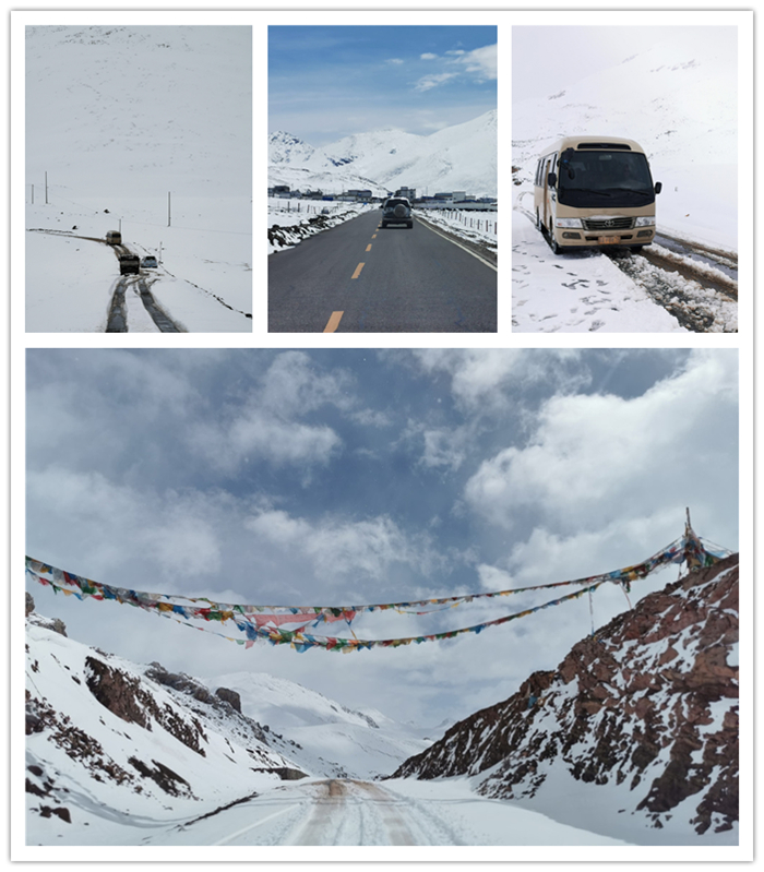 8點30分左右,義診隊伍到達(dá)當(dāng)雄縣境內(nèi)時天氣驟變,漫天的飛雪瞬時將羌塘草原披上了一件銀色外衣,天地間茫茫一片,駕駛員為了保證行車安全,放慢了車速,謹(jǐn)慎駕駛。