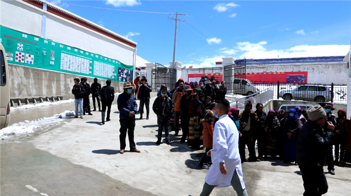 嘉黎縣夏瑪鄉(xiāng)鄉(xiāng)長李智安、鄉(xiāng)衛(wèi)生院院長東知塵措帶領(lǐng)全院醫(yī)護人員和數(shù)百名當(dāng)?shù)厝罕娫缭缬蛟谛l(wèi)生院內(nèi),為遠(yuǎn)道而來的我們獻(xiàn)上了潔白的哈達(dá)。