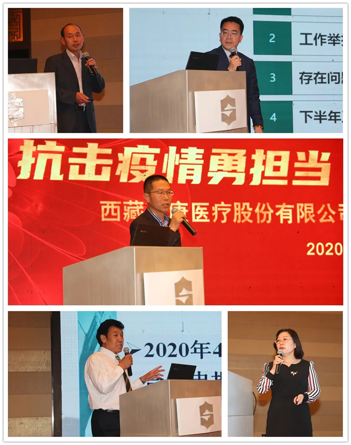 阜康醫(yī)院總院長寧曉分別從"2020年醫(yī)院上半年工作總結”、"2020年醫(yī)院上半年經營總結”、"2020年醫(yī)院下半年工作重點”等三個方面進行了總結匯報。據(jù)介紹,面對從天而降的"新冠”疫情,西藏阜康醫(yī)療股份有限公司積極承擔社會責任,在各種防疫物資空前緊缺的情況下,根據(jù)王斌董事長的指示,阜康醫(yī)療積極組織各類防疫物資支持全區(qū)、乃至全國的抗疫工作,共向拉薩市衛(wèi)健委、湖北仙桃市紅十字會等21個單位捐贈70余萬元的抗疫物資。隨后,在王斌董事長的安排下,阜康醫(yī)療又向湖北省紅十字會捐款100萬元用于支持雷神山醫(yī)院建設、向湖北省仙桃市紅十字會捐贈10萬元用于新冠肺炎患者救治、發(fā)動全體黨員和職工捐贈120577元交由自治區(qū)紅十字會用于支援全區(qū)和全國抗疫工作。同時西藏阜康醫(yī)院還積極響應自治區(qū)抗疫工作領導小組以及拉薩市衛(wèi)健委要求,先后派出19名醫(yī)務人員進駐機場、酒店,有力支持了全區(qū)的抗疫工作。