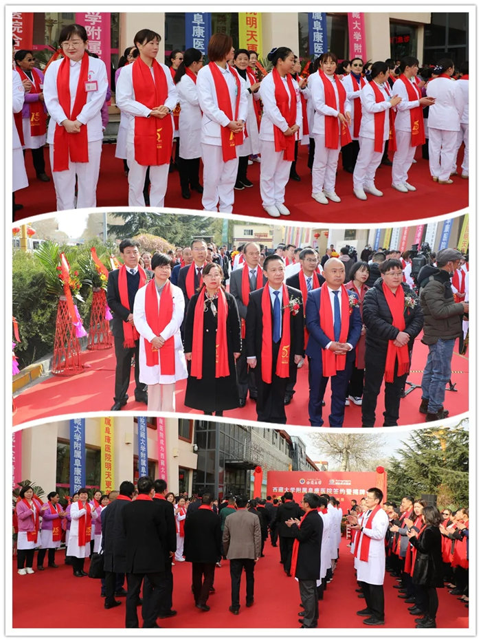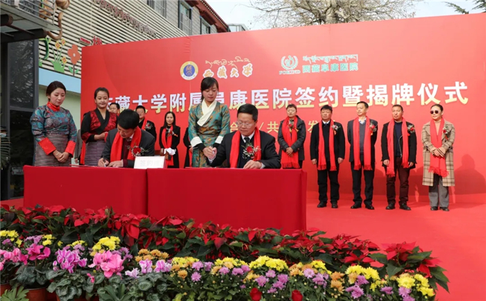 在西藏大學(xué)附屬阜康醫(yī)院簽約暨掛牌儀式現(xiàn)場,來自合作雙方的西藏大學(xué)領(lǐng)導(dǎo)、各教研組等三十余人,以及阜康醫(yī)院領(lǐng)導(dǎo)及部分專家和科主任一百余人參加了儀式。
