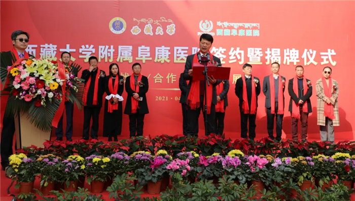 王斌董事長在致辭中說,在黨委、政府的關(guān)懷之下,在主管部門的指導(dǎo)之下,在全區(qū)人民和社會各界的支持之下,西藏阜康醫(yī)院經(jīng)過十六年的發(fā)展,已經(jīng)成為一家現(xiàn)代化綜合性三級民營醫(yī)院。此次西藏大學(xué)與西藏阜康醫(yī)院的"聯(lián)姻”,開啟了地方高校與民營醫(yī)院深度合作的先河,西藏阜康醫(yī)院成為西藏大學(xué)的附屬醫(yī)院,體現(xiàn)了西藏大學(xué)對阜康醫(yī)院的信任,同時也為阜康醫(yī)院的發(fā)展注入了"強心劑”,雙方的合作一定能實現(xiàn)優(yōu)勢互補、資源共享、互利雙贏,補齊短板的預(yù)期目的。