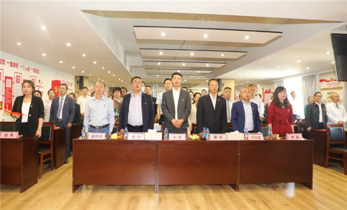 會議在雄壯的國歌聲中隆重召開。亞洲第一位登頂珠峰的盲人——阜康醫院針灸理療科張洪醫生從國外發來祝福視頻;會議播放了中國共產黨百年述職專題片,公司全體黨員一起學習了百年黨史。
