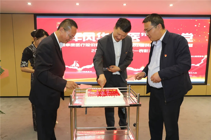 在中國共產黨建黨百年的歷史時刻,西藏阜康醫療黨委還專門制作了慶祝中國共產黨建黨100周年生日蛋糕,全體黨員共同慶祝黨的百年生日,有力傳達了"永遠跟黨走”的鏗鏘心聲!