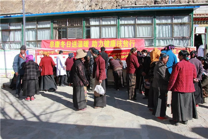 11月26日下午,西藏阜康醫院醫療隊來到了扎西頂村,聽說我們的到來,不少牧民群眾早已在村民委員會等候,醫療隊到達后快速投入義診工作,為大家量血壓、做B超等,為近200名牧民送醫、送藥,發放了價值6000余元藥品。義診結束后,扎西頂村駐村工作隊隊長普布瓊達與醫療隊共同為義診群眾贈送了價值5000余元的衣物。