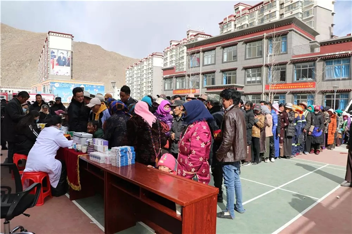 3月5日,西藏阜康醫療股份有限公司黨委志愿義診組來到拉薩市經開區德吉康薩社區,為一千多名農牧區搬遷群眾進行義診,并捐贈了價值一萬多元的藥品。